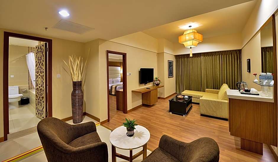 These spacious suites feature a separate living area, work desk and tea/coffee making facilities. The private bathrooms offer toiletries and a hairdryer. Bottled water is provided.